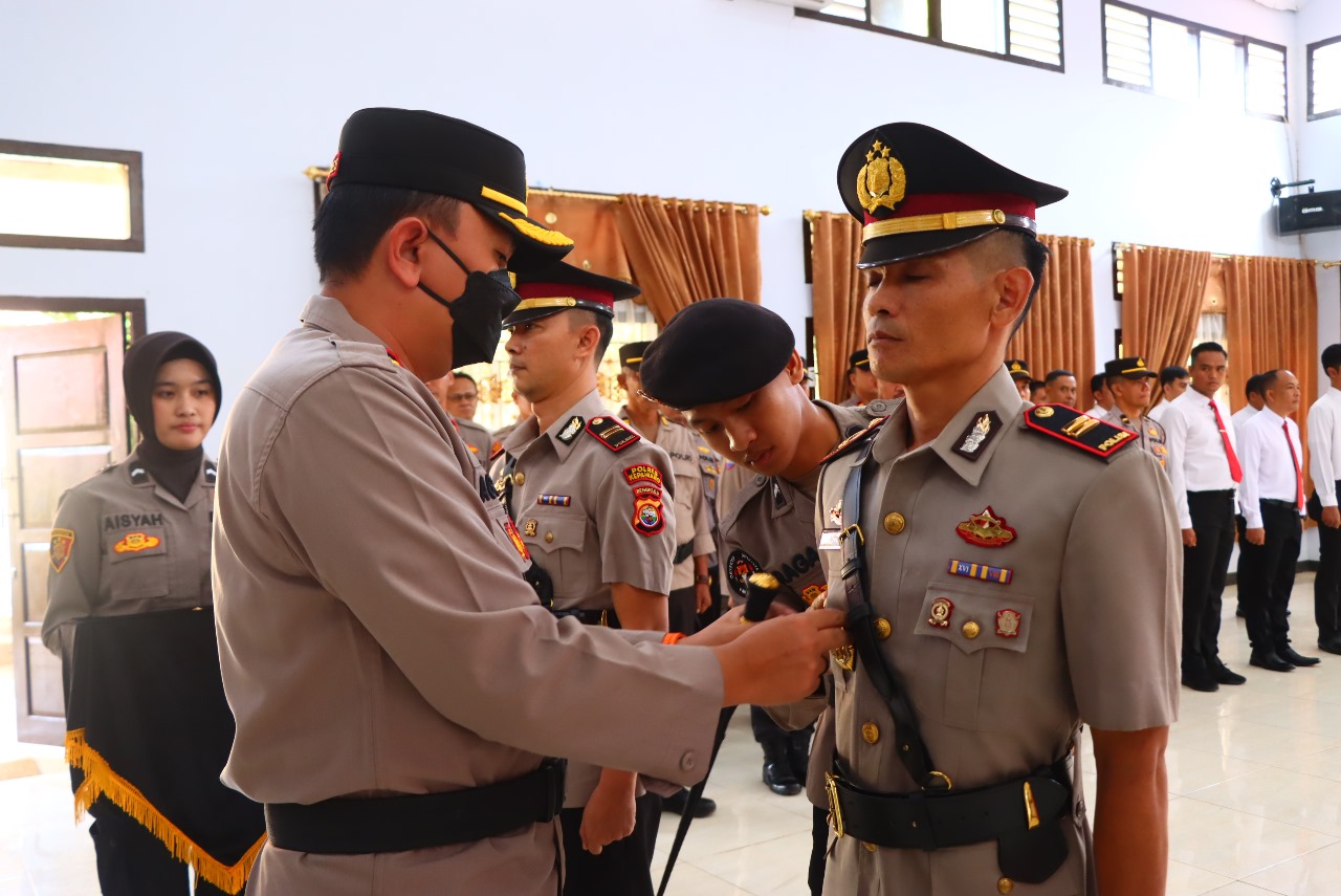 Lebong – Kapolres Lebong Polda Bengkulu AKBP Agoeng Ramadhani, memimpin serah terima jabatan Kasatres Narkoba, dari pejabat lama Iptu Eka Gustian Saputra, kepada pejabat baru, Iptu Medi Azwar.