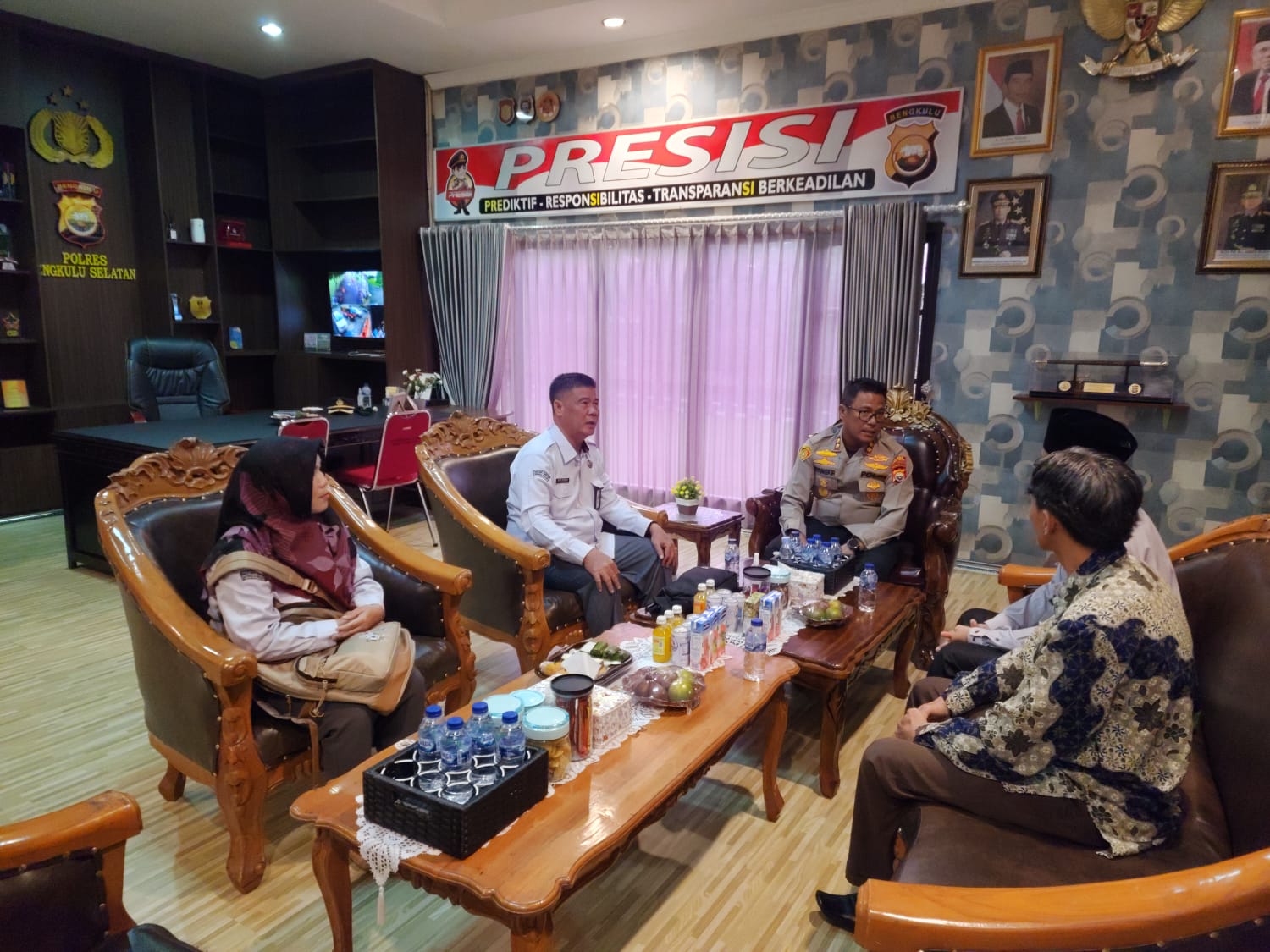 Kedatangan Ketua KPU kabupaten Bengkulu Selatan M. Arif Luthfi, M.Pd di Polres Bengkulu Selatan didampingi Komsioner KPU Aldi Akbar, Sekertaris KPU Sipto Riusman, S.E., Bendahara KPU Septemi Herni, disambut langsung oleh Kapolres Bengkulu Selatan AKBP Florentus Situngkir, S.I.K., didampingi Kasat Intelkam Polres Bengkulu Selatan AKP Ahmad Khairuman, S.E, M.Si.