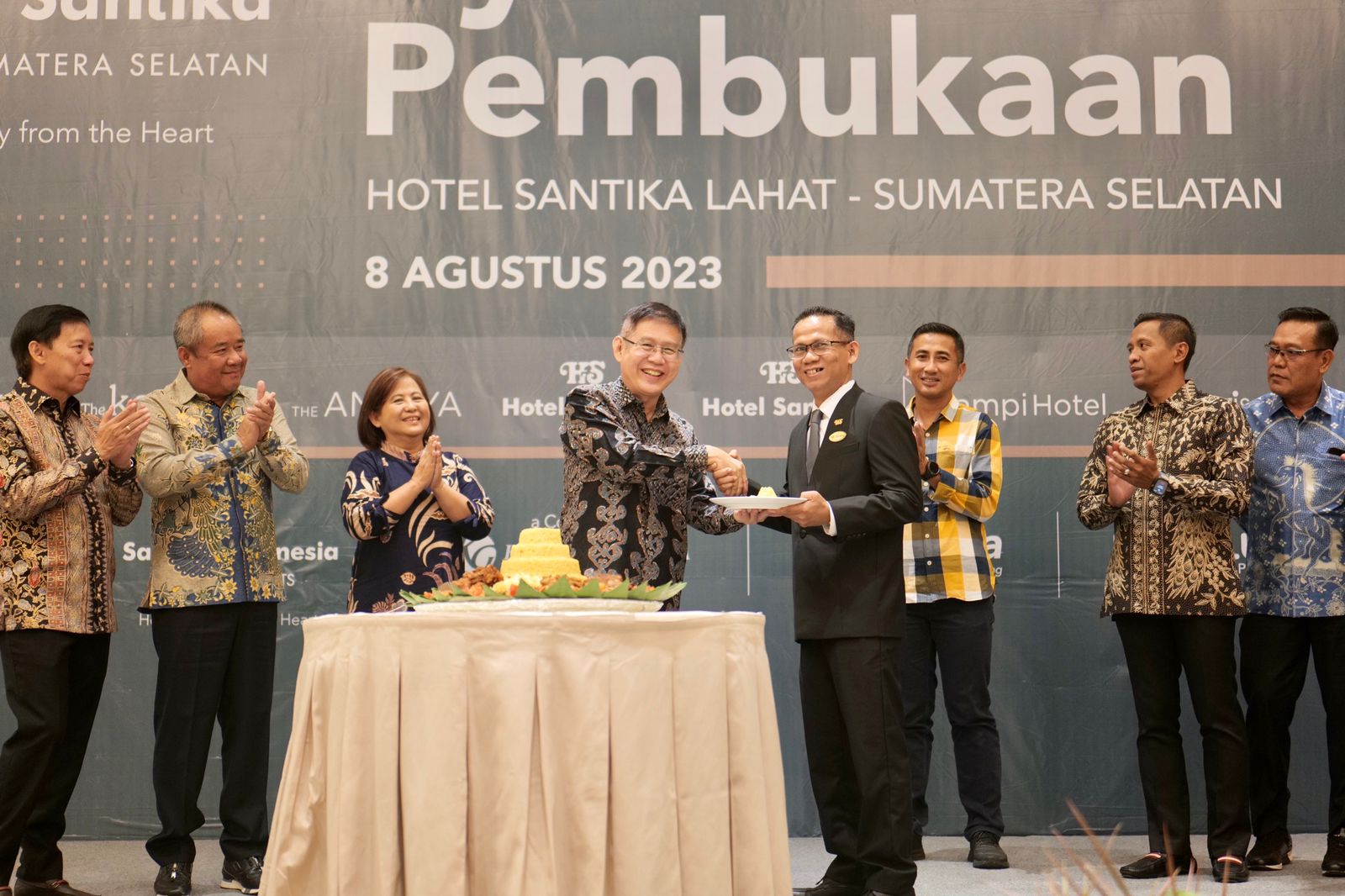 Santika Indonesia Hotels & Resorts menghadirkan Hotel Santika Lahat – Sumatera Selatan sebagai pilihan akomodasi terbaik di Kabupaten Lahat. Peresmian Hotel Santika Lahat – Sumatera Selatan ditandai dengan penandatanganan prasasti oleh Bupati Lahat, H. Cik Ujang SH. Penandatangan prasasti kemudian dilanjutkan dengan pemotongan tumpeng oleh Komisaris Utama PT Lentera Damai Indonesia, Bapak Supardi Sukanta, sebagai perusahaan pemilik Hotel Santika Lahat – Sumatera Selatan. Potongan tumpeng kemudian diberikan kepada Bapak Johanes Widjaja selaku Direktur Utama PT Grahawita Santika dan diteruskan kepada Bapak Salman Marak Uma selaku General Manager Hotel Santika Lahat – Sumatera Selatan. Prosesi disaksikan oleh jajaran Forkopimda Kabupaten Lahat, jajaran direksi PT Lentera Damai Indonesia, jajaran direksi PT Grahawita Santika dan para tamu undangan.