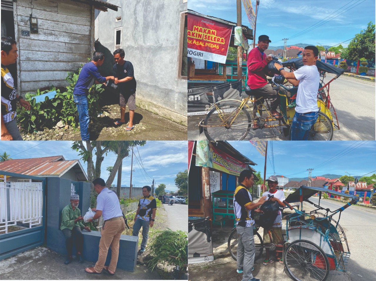 Adapun, rinciannya pembagian paket sembako yakni bagi warga tukang becak ekonomi rendah di Kelurahan Talang Benih sebanyak 25 paket sembako, kemudian 25 paket sembako bagi tukang ojek di Kelurahan Jalan Baru, selanjutnya 20 paket sembako bagi bagi warga kurang mampu di Desa Rimbo Kecap dan 30 paket sembako bagi tukang ojek di Kelurahan Talang Benih.