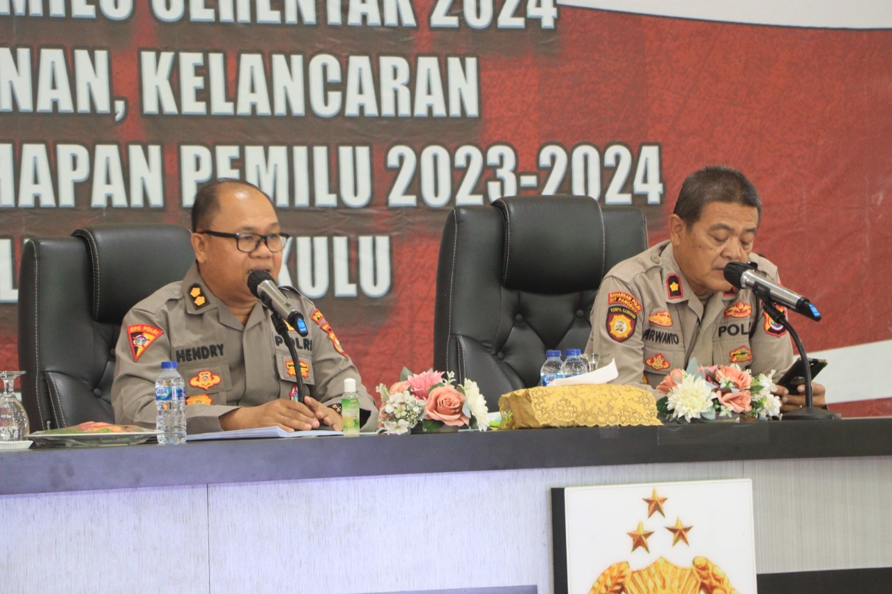 Bengkulu – Hari kedua pelaksanaan Latpra Ops Mantap Brata Nala 2023 pada Rabu (11/10/2023), berlangsung dengan sukses di Gedung Adem Polda Bengkulu. Operasi ini dipimpin oleh Kabag Binops Roops Polda Bengkulu AKBP Hendry Zusianto S.E., dan dihadiri oleh personel yang terlibat Operasi OMB.