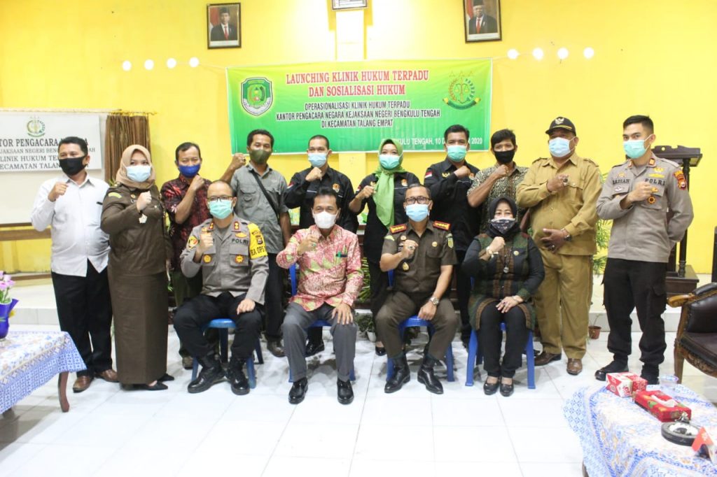 Bengkulu, Siberindo.co – Launching Klinik Hukum Terpadu dan Sosialisasi Hukum, Operasionalisasi Klinik Hukum Terpadu Kantor Pengacara Negara Kejaksaan Negeri Bengkulu Tengah di Kecamatan Talang Empat, Kamis (10/12/2020).