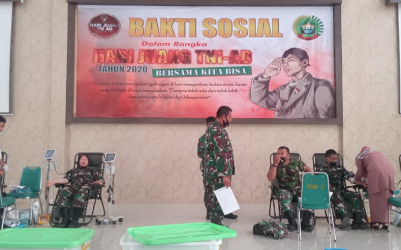 Hari Juang TNI AD 2020, Korem 033/WP Laksanakan Bakti Sosial Donor Darah