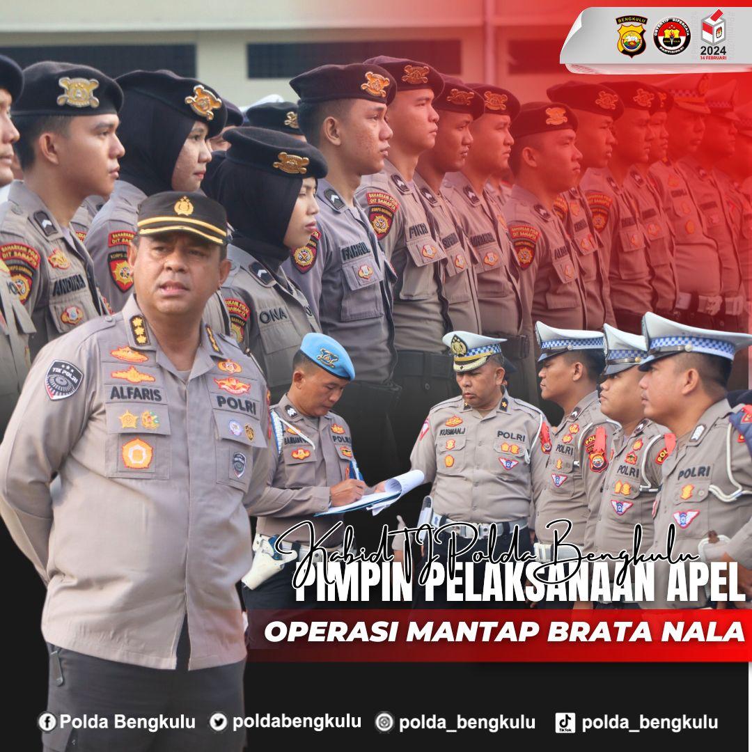 Bengkulu – Kabid TIK Polda Bengkulu Kombes Pol Alfaris Pattiwael, S.H., S.I.K. memimpin langsung pelaksanaan Apel Personil Operasi Mantap Brata Nala 2023 Polda Bengkulu di Lapangan Rekonfu, Senin (11/12/23) pagi.