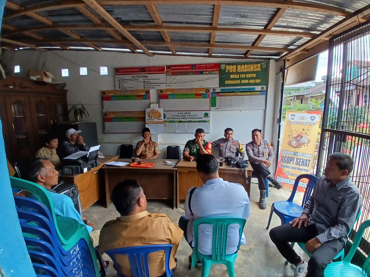 Lebong – Dalam rangka cooling system pasca Pilkada, Kanit Binmas dan Bhabinkamtibmas Polsek Rimbo Pengadang Polres Lebong Polda Bengkulu, melaksanakan kegiatan Ngopi Bareng warga di Desa Tik Kuto Kecamatan Rimbo Pengadang Kabupaten Lebong, Selasa (10/12/2024).