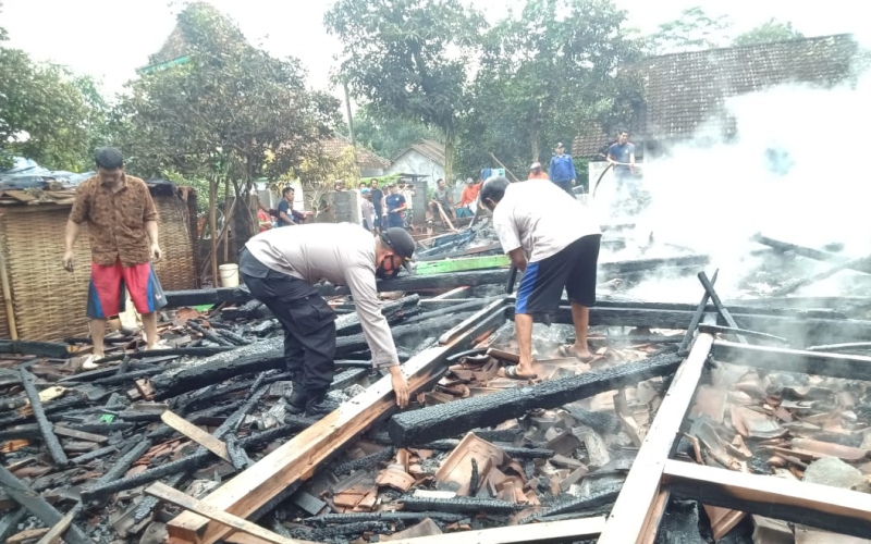 Setelah api berhasil dipadamkan, petugas gabungan dari Polsek Subah, Koramil Subah, pemadam kebakaran bersama warga membersihkan puing-puing sisa kebakaran.