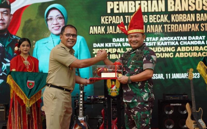 “Terima kasih Bapak Jenderal atas kehadirannya di Kota Makassar. Kami (Pemerintah Kota Makassar) beserta masyarakat siap bersama TNI Angkatan Darat melaksanakan program-program untuk membangun dan meningkatkan kesejahteraan masyarakat Makassar,” ujarnya.