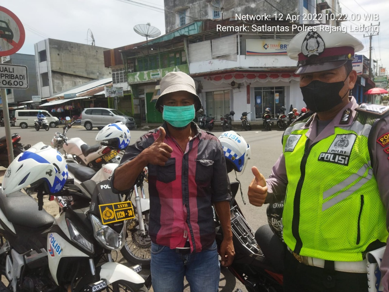 Bengkulu, Siberindo.co – Satlantas Polres Rejang Lebong Polda Bengkulu pada Selasa (12/4/2020), melakukan pembagian masker kepada pengguna jalan yang tidak mengenakan masker. Pembagian masker secara gratis dilakukan oleh personel Satlantas di ruas Jalan M Hasan-Jalan Merdeka Curup Kabupaten Rejang Lebong.