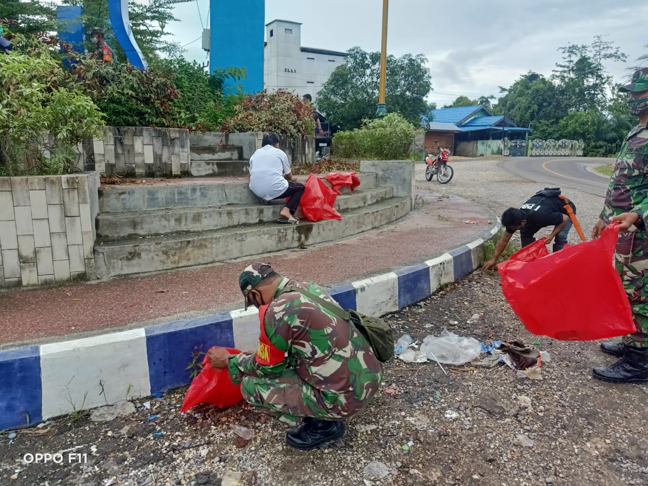 BARITO UTARA – Babinsa Koramil 1013-01/Kandui Jajaran Kodim 1013/Mtw Pelda Sigit melaksanakan gotong-royong bersama masyarakat membersihkan sampah pelastik di jalan Desa Kandui Kecamatan Gunung Timang Kabupaten Barito Utara, Pada hari Sabtu (12/06/21).