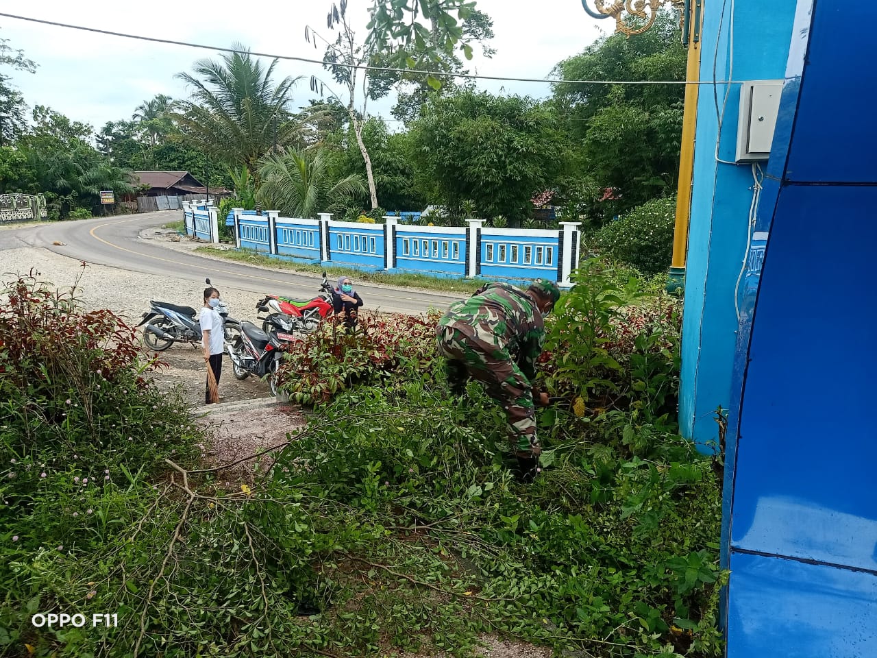 Babinsa berperan aktif dalam upaya melindungi kebersihan masyarakat setempat, Babinsa mengajak masyarakat gotong royong membersihkan jalan desa teluk jolo, dengan adanya rasa peduli terhadap lingkungan upaya ini selalu rutin dilaksanakan.