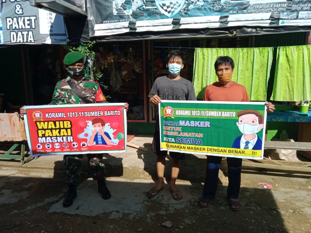 Lebih lanjut Plh Danramil 1013-12/Sumber Barito menjelaskan, pencegahan yang dimaksud diantaranya baik melalui patroli pendisiplinan dan juga sosialisasi atau edukasi tentang protokol kesehatan, dan menghimbau Selalu Memakai Masker, Rajin Mencuci Tangan Menggunakan Sabun dengan air yang mengalir atau Handsanitaizer, Jaga Jarak Perorangan minimal 1-2 Meter, Jangan keluar rumah apabila tidak ada kegiatan penting, Mengkonsumsi makanan yang Bergizi, Istirahat yang teratur, rajin berolahraga dan Tingkatkan Daya Tahan Tubuh dengan mengkonsumsi Vitamin C.