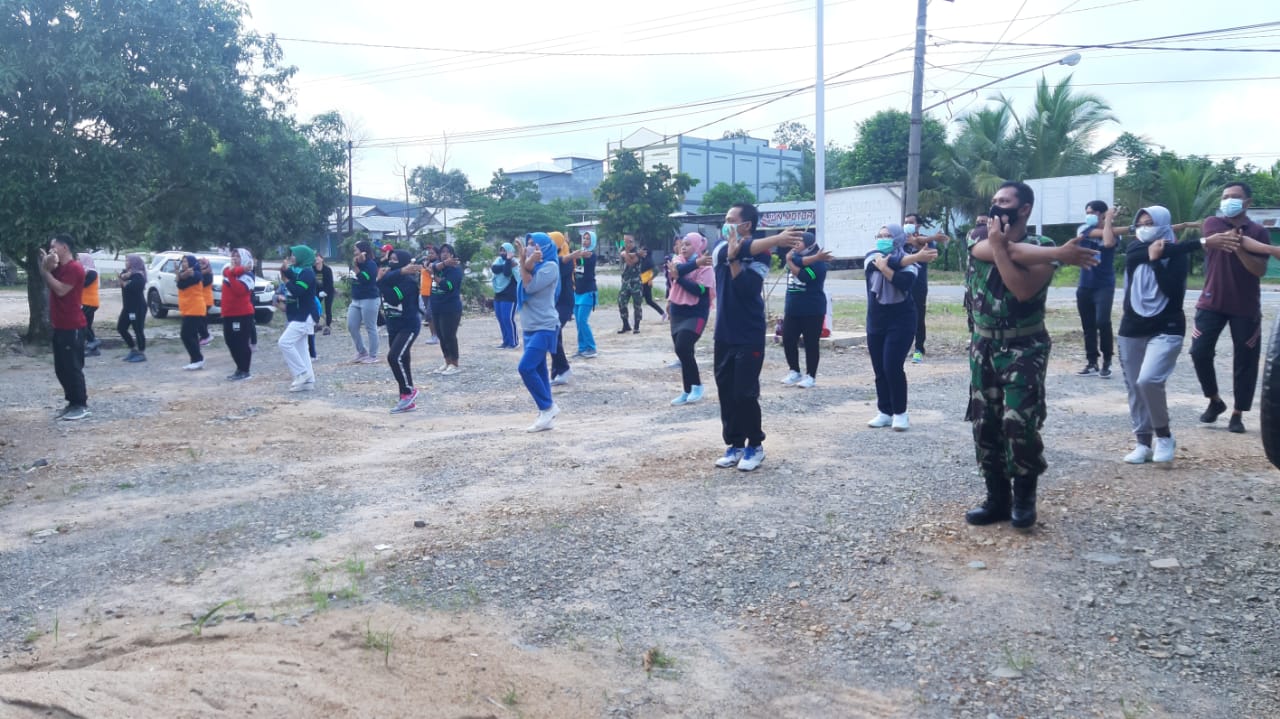 Kotawaringin Barat – Untuk menjaga kebugaran dan kesehatan tubuh, Koramil 1014 – 05/Pangakalan Banteng bersama warga sekitar melaksanakan senam bersama di halaman Makoramil Pangakalan Banteng, (11/6/2021).