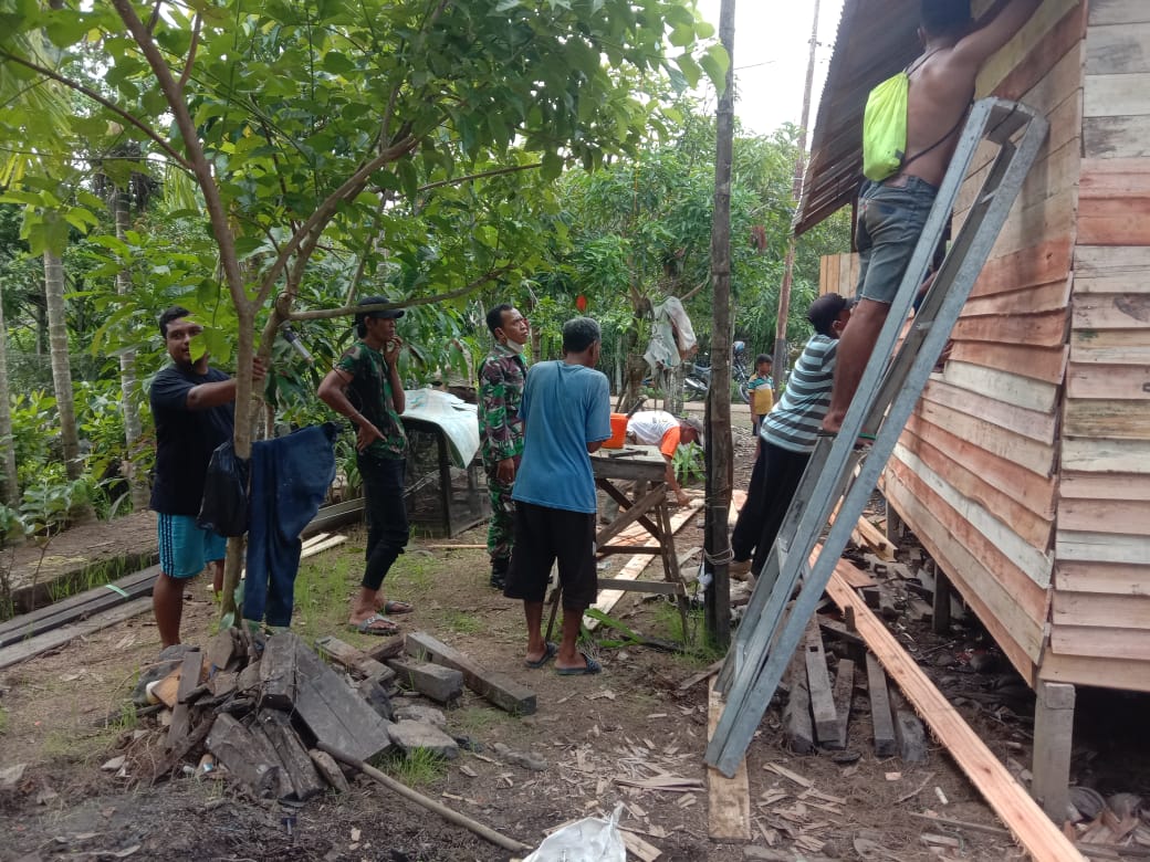 Mempawah – Memasuki hari ketiga rehab Rumah Tidak Layak Huni (RTLH) di Desa Peniti Dalam l, Kecamatan Segedong, Kabupaten Mempawah, Koramil Jungkat sudah merampungkan 60 persen pengerjaan bangunan.