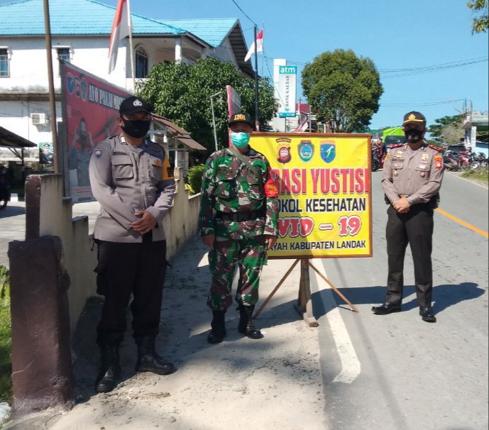 Landak – Koramil Mandor bersama Polsek menggelar Operasi Yustisi Protokol Kesehatan di Jalan Raya Mandor, Kecamatan Mandor, Kabupaten Landak, Jumat (11/6/2021).