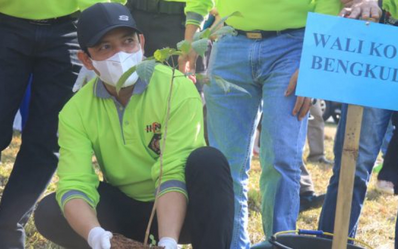Wakil Walikota Bengkulu ikut dalam kegiatan penanaman pohon di kawasan taman berkas, Jumat (11/6/2021) bersama pihak Pemprov dan FKPD provinsi. Kegiatan ini diselenggarakan oleh PWI Provinsi Bengkulu dalam rangka HPN.
