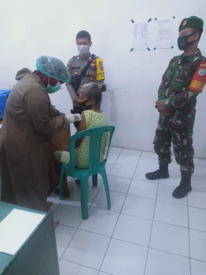 Petugas vaksin di Desa Kertamulya dengan sasaran sebanyak 21 orang.Babinsa Serda Indra Maulana, Bhabinkamtibmas Kertamulya dan petugas yang melaksanakan pengamanan vaksin lansia di Desa Kertamulya.