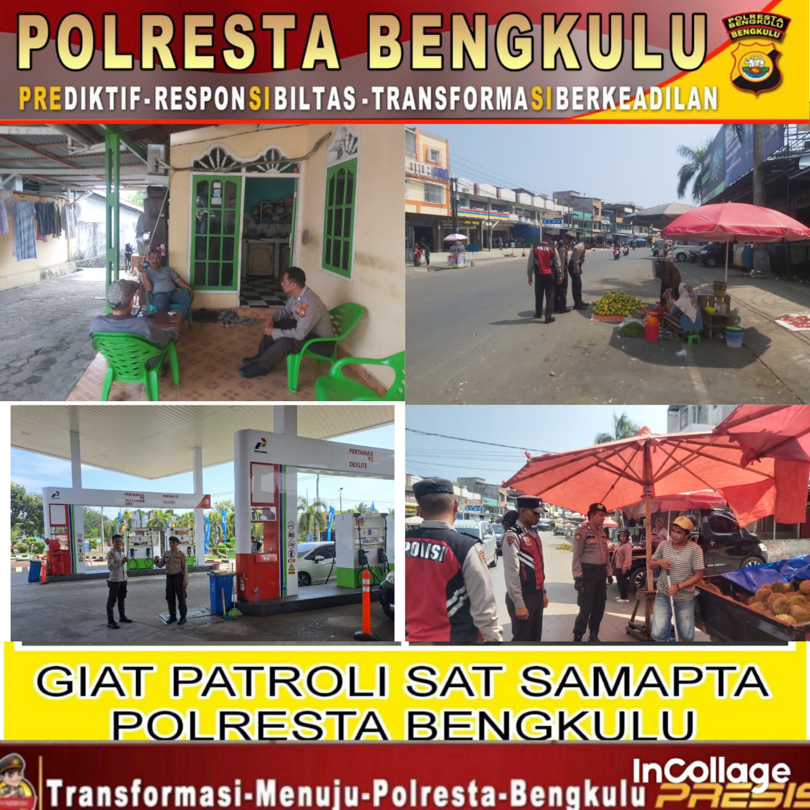 Kota Bengkulu – Guna mengantisipasi gangguan kamtibmas, Sat samapta Polresta Bengkulu Polda Bengkulu, melakukan kegiatan Patroli mobiling serta menyampaikan pesan Kamtibmas kepada masyarakat, Senin (12/06/2023) sore.
