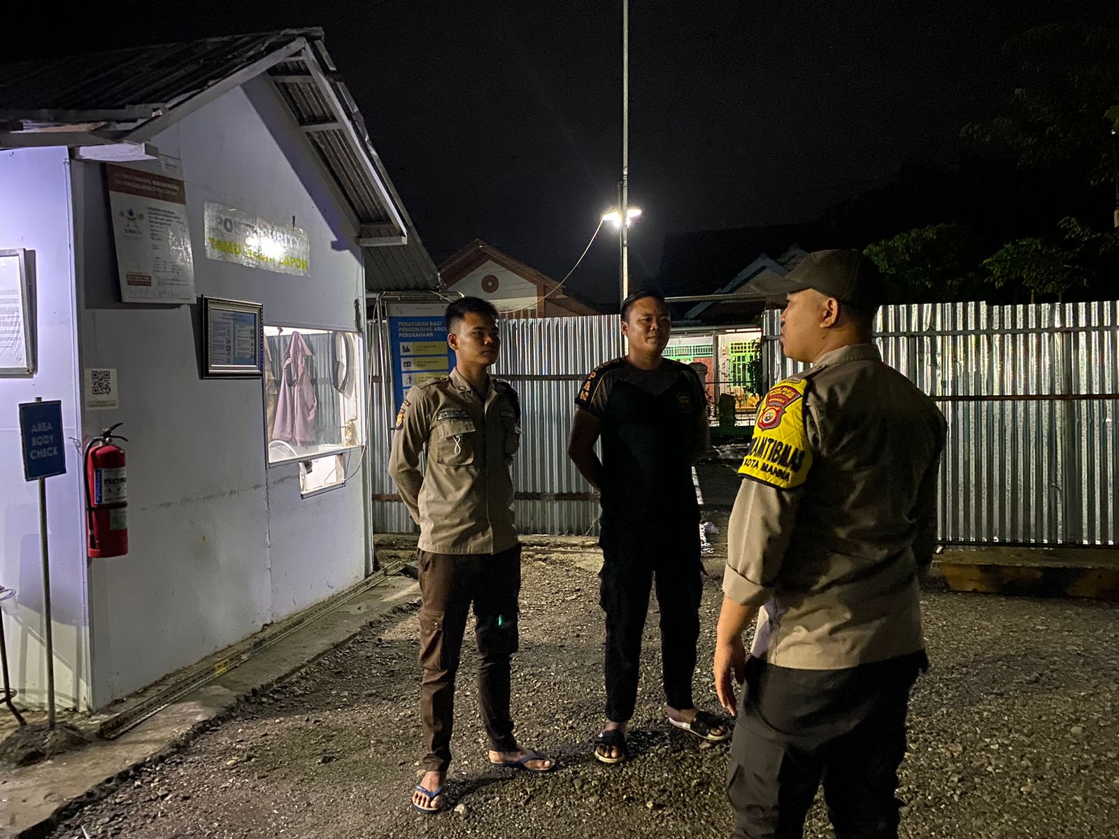 Bripka Guntur Zulkan S.H., dan Briptu Egi Feroza selaku petugas patroli Polri memberikan pesan kamtibmas kepada satpam yang sedang jaga,.