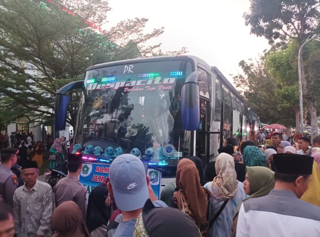 Pengamanan dimulai dari saat para jamaah dan keluarga yang tiba sebelum shalat subuh dilanjutkan dengan shalat subuh berjamaah hingga pelepasan jamaah yang berangkat menggunakan tiga unit bus dikawal personel Sat Lantas sambungnya.