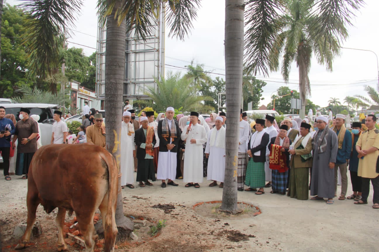 Bengkulu,siberindo.co – Gubernur Bengkulu Rohidin Mersyah menyerahkan 2 ekor sapi dan juga kambing kurban ke Masjid Raya Baitul Izzah, Minggu (10/7/2022) usai melaksanakan sholat Idul Adha 1443 Hijriah Tahun 2022 didampingi Istri Derta Wahyulin Rohidin.