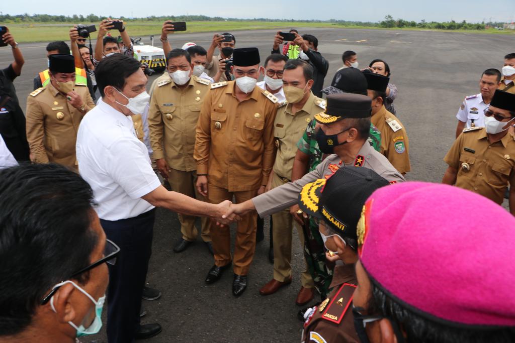 Bengkulu – Kapolda Bengkulu Irjen Pol Drs. Agung Wicaksono, M.Si., bersama Gubernur Bengkulu Dr. H. Rohidin Mersyah, Wagub Bengkulu Dr. H., Rosjonsyah., S.Ip., M.Si., serta unsur Forkopimda Provinsi Bengkulu siang ini, Selasa (12/07/2022), menyambut kedatangan Menko kemaritiman Jend TNI ( Purn ) Luhut Binsar Pandjaitan di ruang tunggu VIP Bandara Fatmawati Bengkulu.