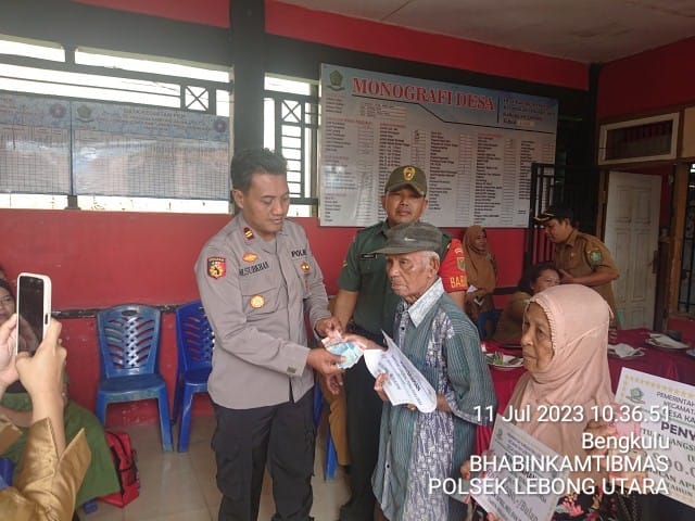 Lebong – Dalam rangka mendukung program pembangunan di desa binaannya, Kapolsek Lebong Utara Polres Lebong Polda Bengkulu, Iptu M Subkhan, menghadiri kegiatan pembagian Bantuan Langsung Tunai Dana Desa (BLT-DD) di Desa Kampung Dalam Kecamatan Lebong Utara, Kabupaten Lebong, Selasa (11/7//2023).