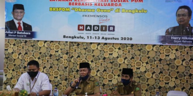 Bengkulu, Siberindo.co – Pemerintah Kota (Pemkot) Bengkulu melalui Dinas Sosial bersama Balai Rehabilitasi Sosial Penyandang Disabilitas Mental Dharma Guna menggelar sosialisasi program bimtek dan intervensi layanan rehabilitasi sosial PDM berbasis keluarga. Kegiatan ini digelar di Aula rumah makan ayam bakar bekakak, Selasa (11/8/2020).