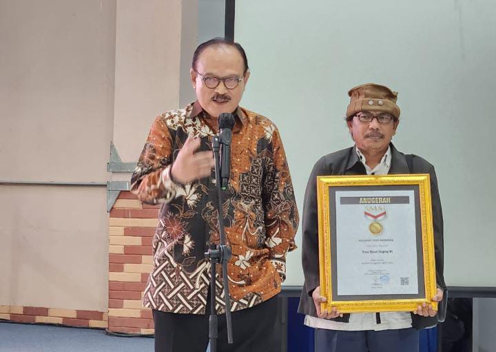 Penyerahan anugerah SMSI itu diserahkan langsung oleh Ketua Umum SMSI Pusat Firdaus kepada Eros Jarot.