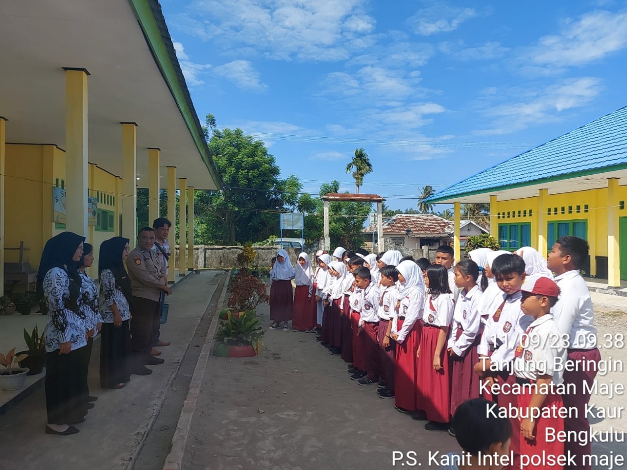 Kaur – Polsek Maje Polres Kaur Polda Bengkulu, melaksanakan program Police Goes To School di SDN 55 Kaur Kecamatan Maje Kabupaten Kaur, Senin (11/9/2023) pagi.