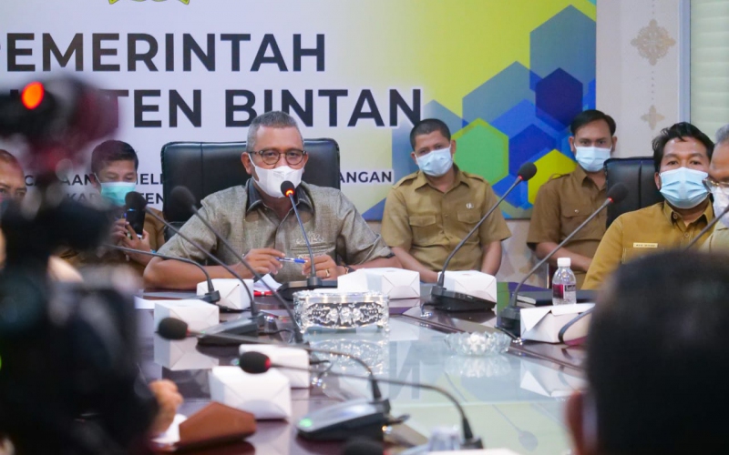 Pasca terjadi bencana Banjir dan tanah longsor yang membuat akses sejumlah jalan rusak, Bupati Bintan, Apri Sujadi memimpin rapat bersama sejumlah OPD Bintan di Kantor Bapelitbang Bintan, Selasa (12/1/2021) .