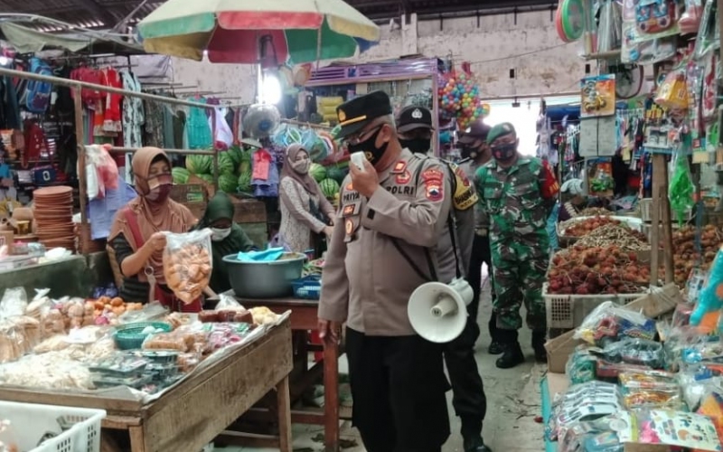 Sosialisasi penegakan Protokol Kesehatan (Prokes) terus digalakkan aparat kepolisian di Kabupaten Pekalongan. Dengan mendatangi Pasar Tradisional, petugas dengan menggunakan pengeras suara mengajak pedagang dan pengunjung pasar untuk tetap mematuhi Protokol Kesehatan diantaranya memakai masker, mencuci tangan dan menjaga jarak.