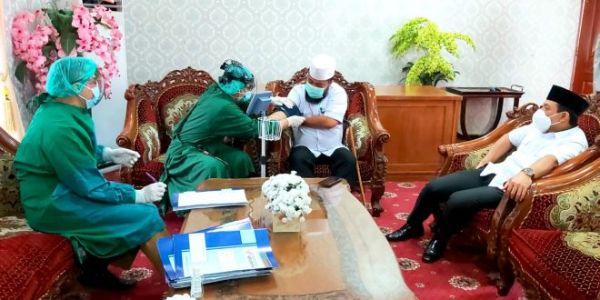 Jelang penyuntikan vaksin Covid-19 yang rencananya dilakukan serentak tanggal 15 Januari khusus kepada seluruh kepala daerah dan wakilnya di kabupaten/kota, Selasa siang (12/1/2020) Walikota Bengkulu Helmi Hasan dan wakil walikota Dedy Wahyudi dilakukan screening terlebih dahulu.