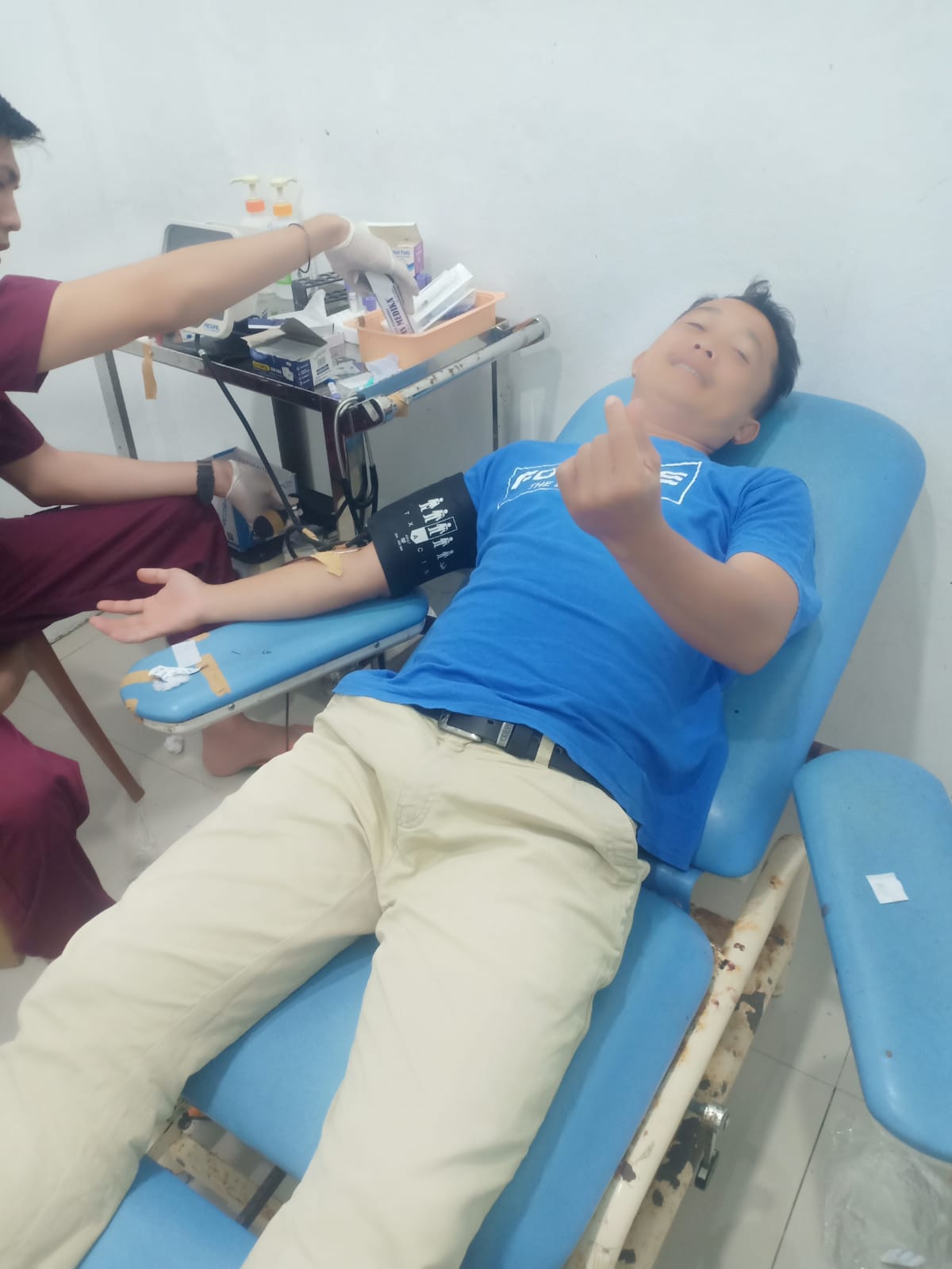 Adapun yang melaksanakan giat donor darah, adalah anggota komunitas darahku bernama Zaynan (34) dan tim relawan.