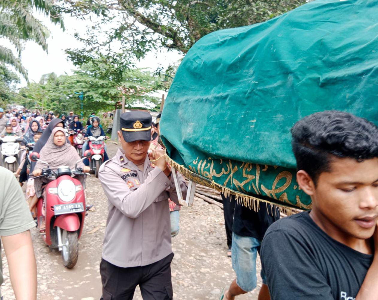 Tidak hanya melayat, tapi Wakapolsek dan anggota Polsek juga turut membantu membawa jenazah ke pemakaman.