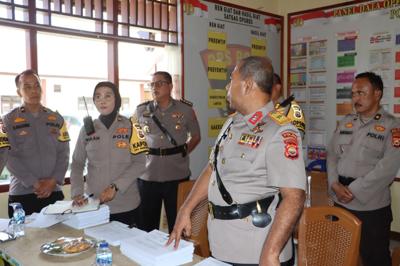 Sebelum memberikan arahan, Wakapolda dan rombongan pengecekan posko Ops Mantap Brata Nala 2023-2024. Ia memeriksa secara langsung kelengkapan administrasi dan data panel Ops Mantap Brata di Polres Kepahiang.