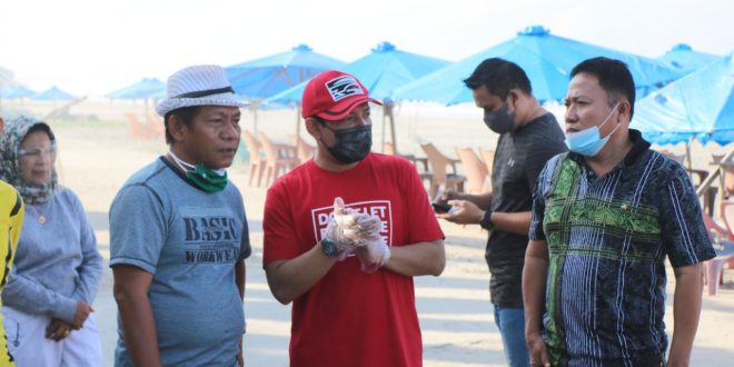 “Untuk para pengunjung dan pedagan marilah kita jaga kebersihan pantai. Apabila imbauan ini tidak dilaksanakan dan tidak ada perubahan kebiasaaan membuang sampah sembarangan, nantinya kita akan tindak tegas dengan menegakkan Perda nomor 2 tahun 2011 tentang sampah. Sanksinya denda Rp 5 juta dan 3 bulan kurungan. Hal dilakukan karena pemerintah tidak main-main dalam hal ini,” jelasnya.