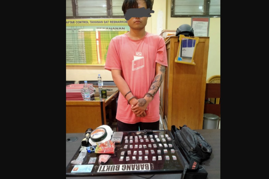 AH diduga menjadi pengedar Narkoba jenis sabu, dimana saat diamankan petugas didapati sejumlah barang bukti narkoba.