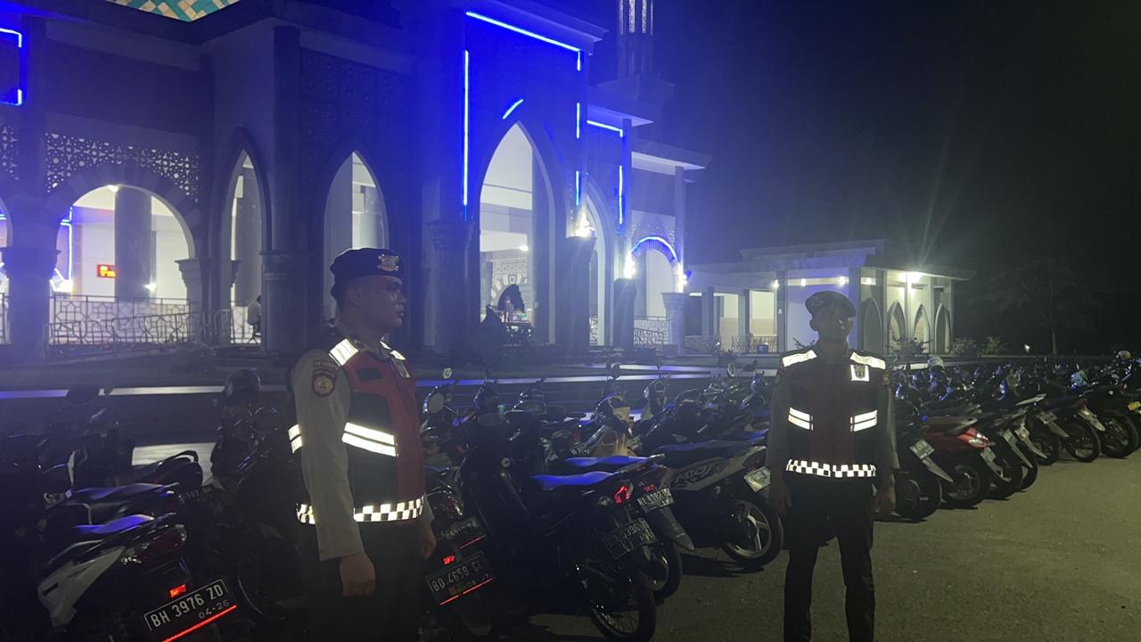 Mukomuko – Satuan Samapta Polres Mukomuko turut membantu mengatur arus lalu lintas dan pengamanan shalat terawih di Masjid Agung Baitul Huda Kecamatan Kita Mukomuko, Selasa (12/3/2024).