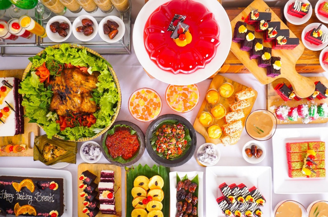 Dimulai dengan menu hidangan khas Ramadhan yang manis disajikan aneka kurma, kolak, bubur manis, aneka kue jajanan pasar serta pilihan minuman dingin yang menyegarkan seperti Es Campur, Sop Buah, Es Teler, Es Kuwut, Es Kopyor dan yang lainnya. Harga juga sudah termasuk dengan menu makanan utama yaitu nasi putih, sup, nasi goreng/mie goreng, daging/ayam dengan menu seperti Tongseng Daging, Ayam Goreng Ketumbar, Gulai Daging, Ayam Betutu, dan lainnya, ditambahkan juga menu ikan, sayur dan telur atau tahu/tempe, disajikan lengkap dengan aneka lalapan segar, aneka kerupuk serta aneka sambal.