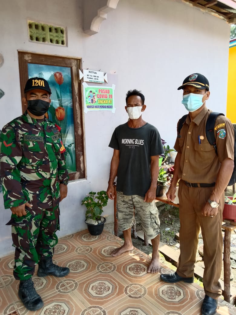 Mempawah – Babinsa Koramil 1201-05/Toho Kopda Sugiyono bersama Aparat Desa setempat melakuakan pengecekan Posko Pemberlakuan Pembatasan Kegiatan Masyarakat berbasis mikro (PPKM Mikro) tingkat RT di Desa Sambora, Kecamatan Toho, Kabupaten Mempawah, Sabtu (12/6/2021).