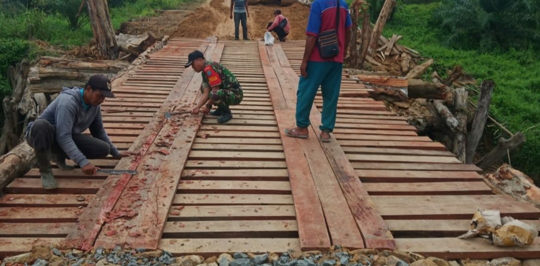 “Bersama warga, kami perbaiki seadanya dulu sambil menunggu jembatannya diperbaiki permanen oleh pihak terkait,” ujar Serda Dalima, Sabtu (12/6/2021).