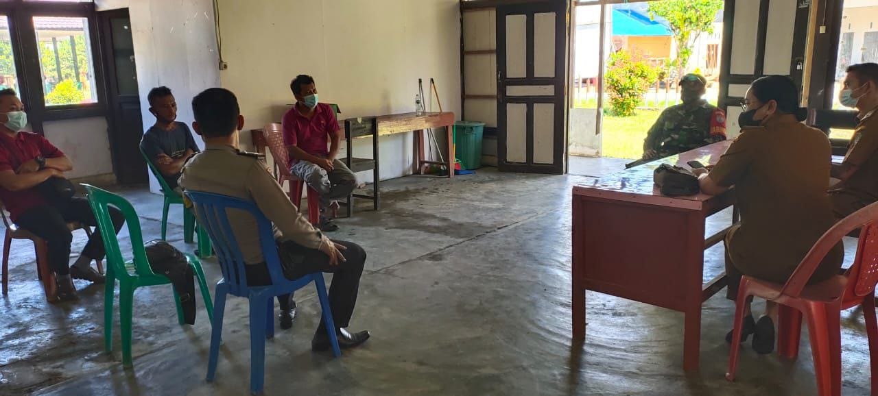 Landak – Babinsa Koramil 1201-07/Mempawah Hulu, Sertu HB Waratmojo melakukan komunikasi sosial (Komsos) di Kantor Camat Mempawah Hulu, Kabupaten Landak, Sabtu (12/6/2021).