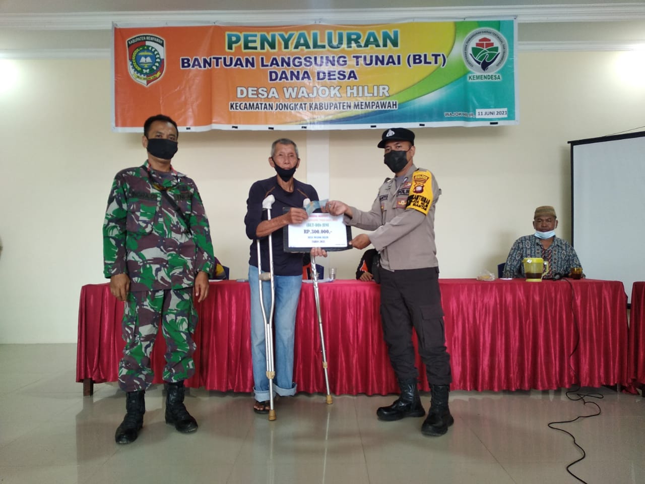 Mempawah – Babinsa Koramil 01/Jungkat, Serma Indra Gunawan melakukan pendampingan pembagian Bantuan Langsung Tunai Dana Desa (BLT-DD) yang digunakan untuk membantu masyarakat di Desa Wajok Hilir, Kecamatan Jungkat, Kabupaten Mempawah, Sabtu (12/6/2021).