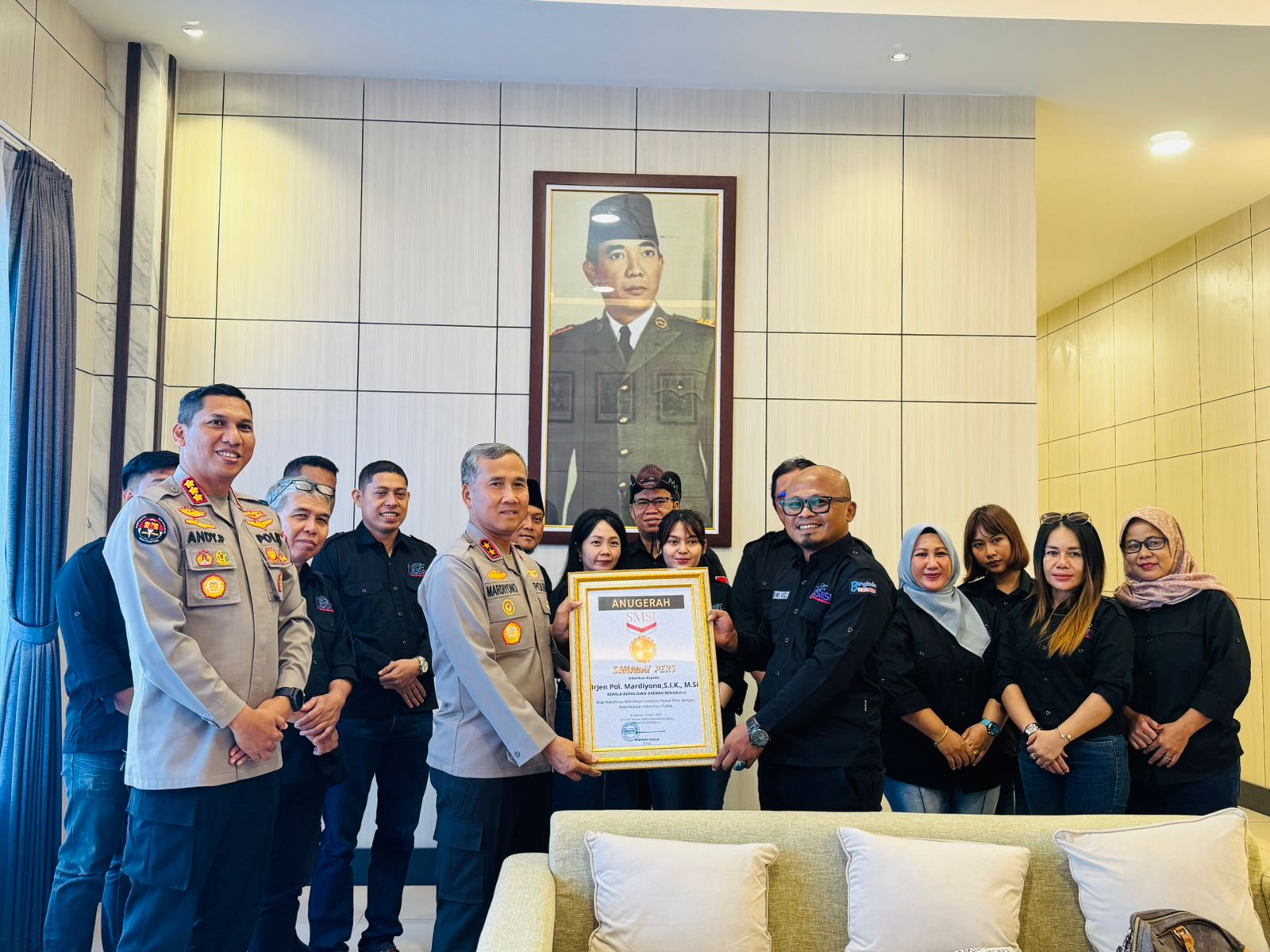 Bengkulu – Kapolda Bengkulu Irjen Pol Mardiyono, S.I.K., M.Si., menerima anugerah Sahabat Pers dari Serikat Media Siber Indonesia (SMSI) Bengkulu. Anugerah Sahabat Pers tersebut diberikan sebagai bentuk apresiasi atas kerjasama dan sinergi Polda Bengkulu dengan SMSI Bengkulu, yang selama ini telah terjalin. Selain itu, Anugerah Sahabat Pers, sebagai bentuk penghargaan atas peran Polri dalam keterbukaan informasi publik, terutama kepada media.