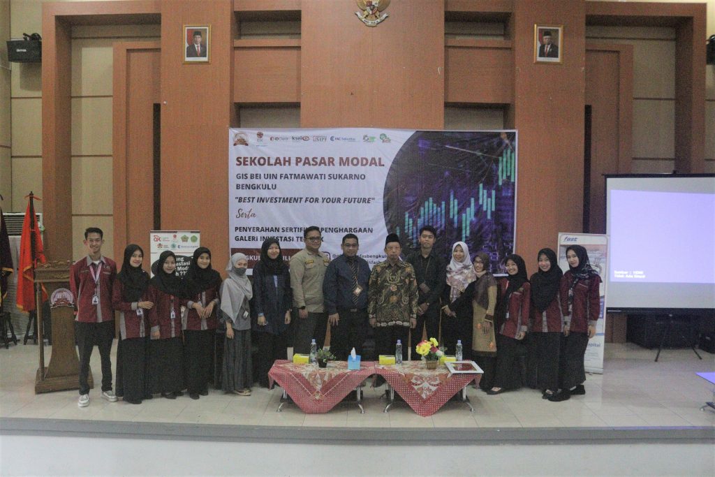 Kegiatan ini merupakan kegiatan yang rutin dilaksanakan oleh Galeri Investasi Syariah Bursa Efek Indonesia (GIS-BEI) UIN Fatmawati Sukarno Bengkulu bersama Kelompok Studi Pasar Modal (KSPM GIS-BEI) yang bekerjasama dengan Bursa Efek Indonesia Kantor Perwakilan Bengkulu dan Fac Sekuritas Bengkulu serta dalam moment ini dilaksanakan penyerahan penghargaan secara langsung oleh Kepala Bursa Efek Indonesia Perwakilan Bengkulu.