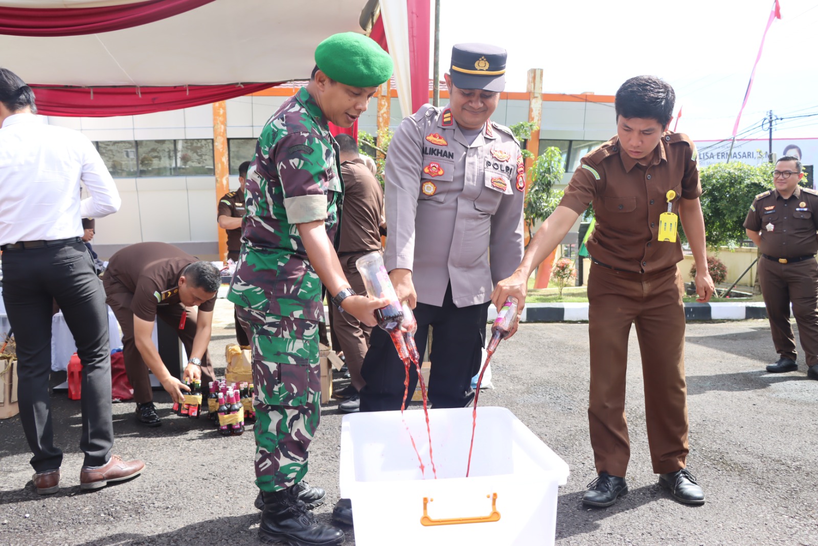 Lebong – Kapolres Lebong Polda Bengkulu AKBP Awilzan, menghadiri kegiatan pemusnahan barang bukti yang sudah memiliki kekuatan hukum tetap (inkrach) oleh Kejaksaan Negeri Lebong.