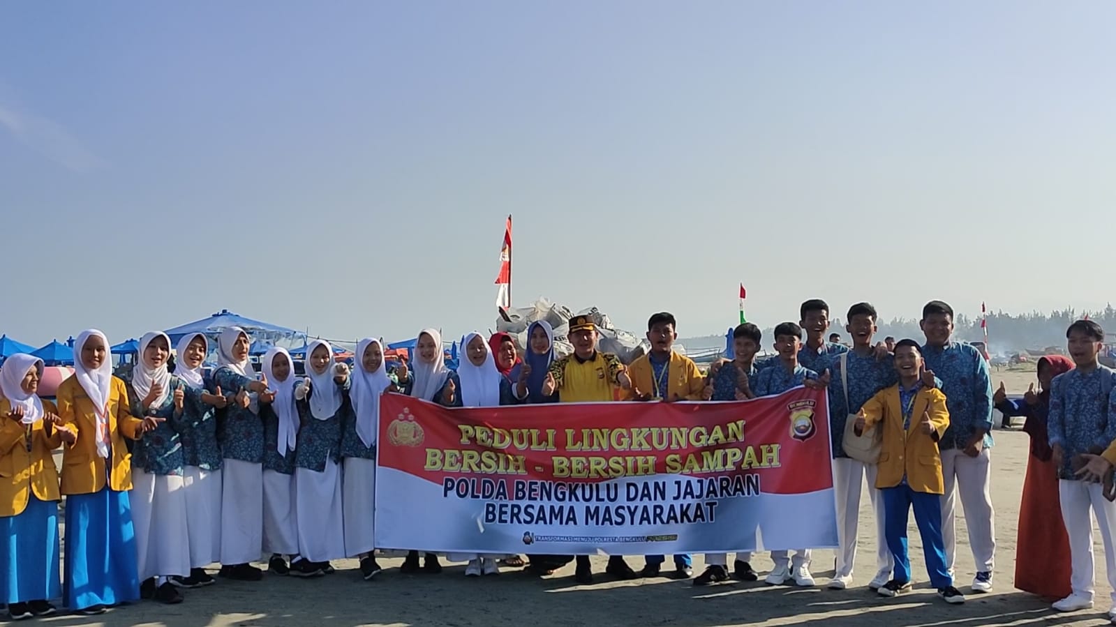 Bengkulu – Sekitar 150 personel Polresta Bengkulu dan Polsek jajaran, bersama Lintas Teluk Sefarra, Staf Kecamatan Teluk Segara dan Kelurahan setempat, para pelajar SMAN 6 Kota Bengkulu, dan warga setempat juga pedagang, melaksanakan kegiatan bersih-bersih Pantai Zakat di Jalan Bencoolen Kecamatan Teluk Segara Kota Bengkulu, Kamis (13/7/2023) pagi.