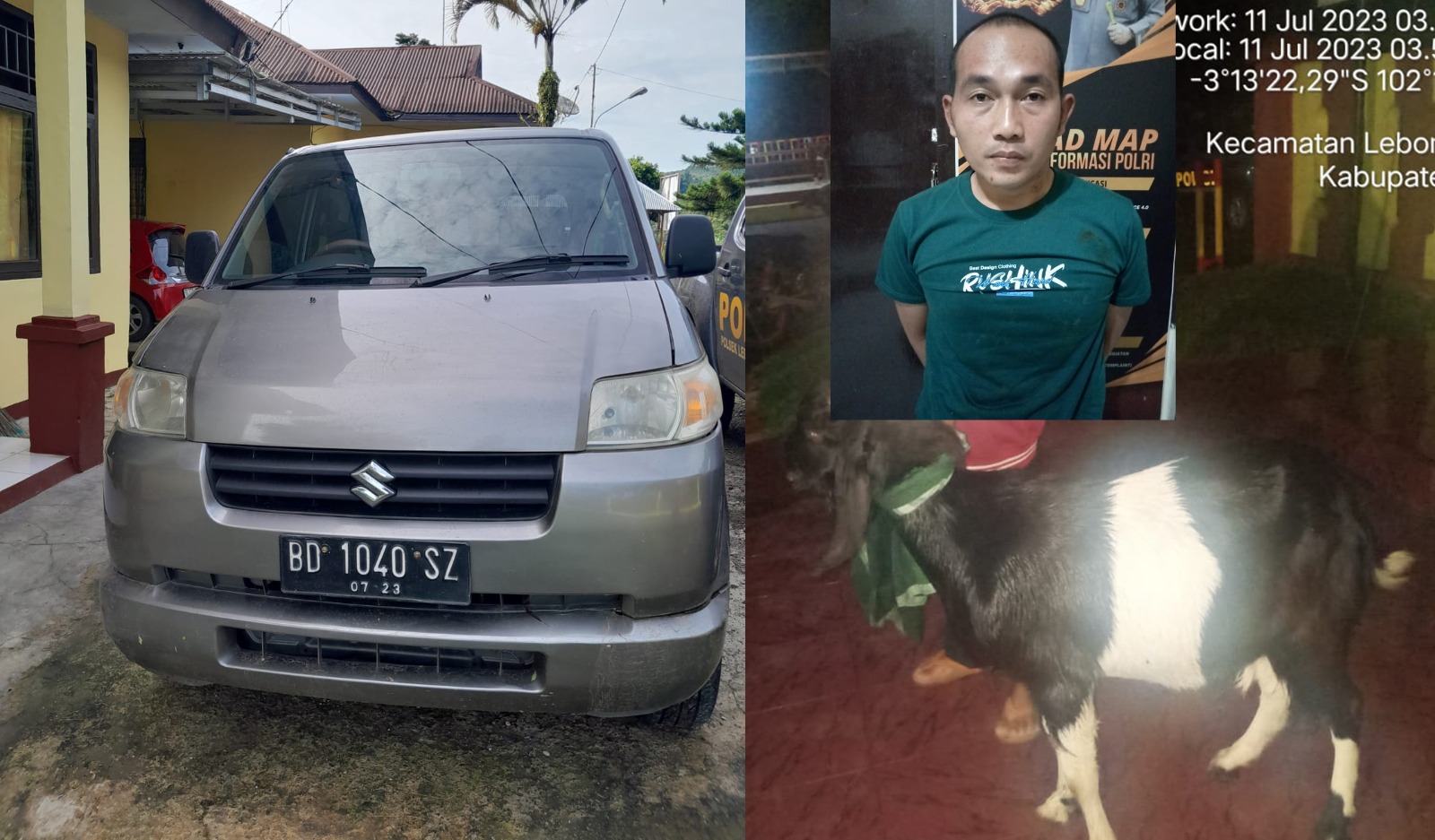 Lanjutnya, berdasarkan laporan korban, petugas Polsek Lebong Selatan langsung melakukan penangkapan terhadap 1 pria terduga pelaku bersama barang bukti 1 ekor kambing dan 1 unit mobil Suzuki APV.