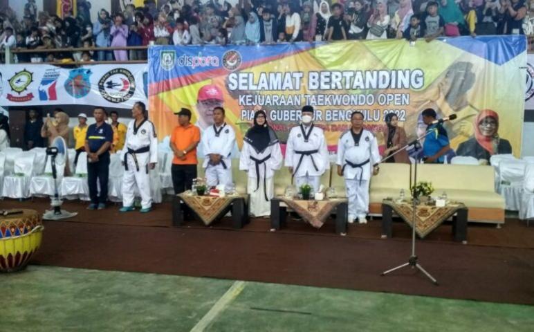 Bengkulu, Siberindo.co – Kejuaraan Taekwondo Open Piala Gubernur Bengkulu 2022 Regional Sumatra dan Undangan resmi dibuka oleh Gubernur Bengkulu Dr H. Rohidin Mersyah Sabtu Siang.