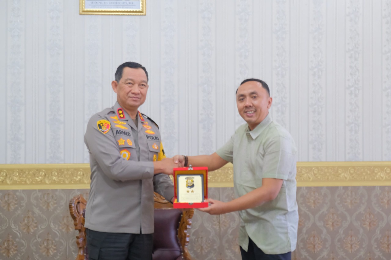 Usai audiensi, Kapolda Bengkulu dan manager PT PLN Persero UPT 3 Bengkulu saling bertukar cindera mata.